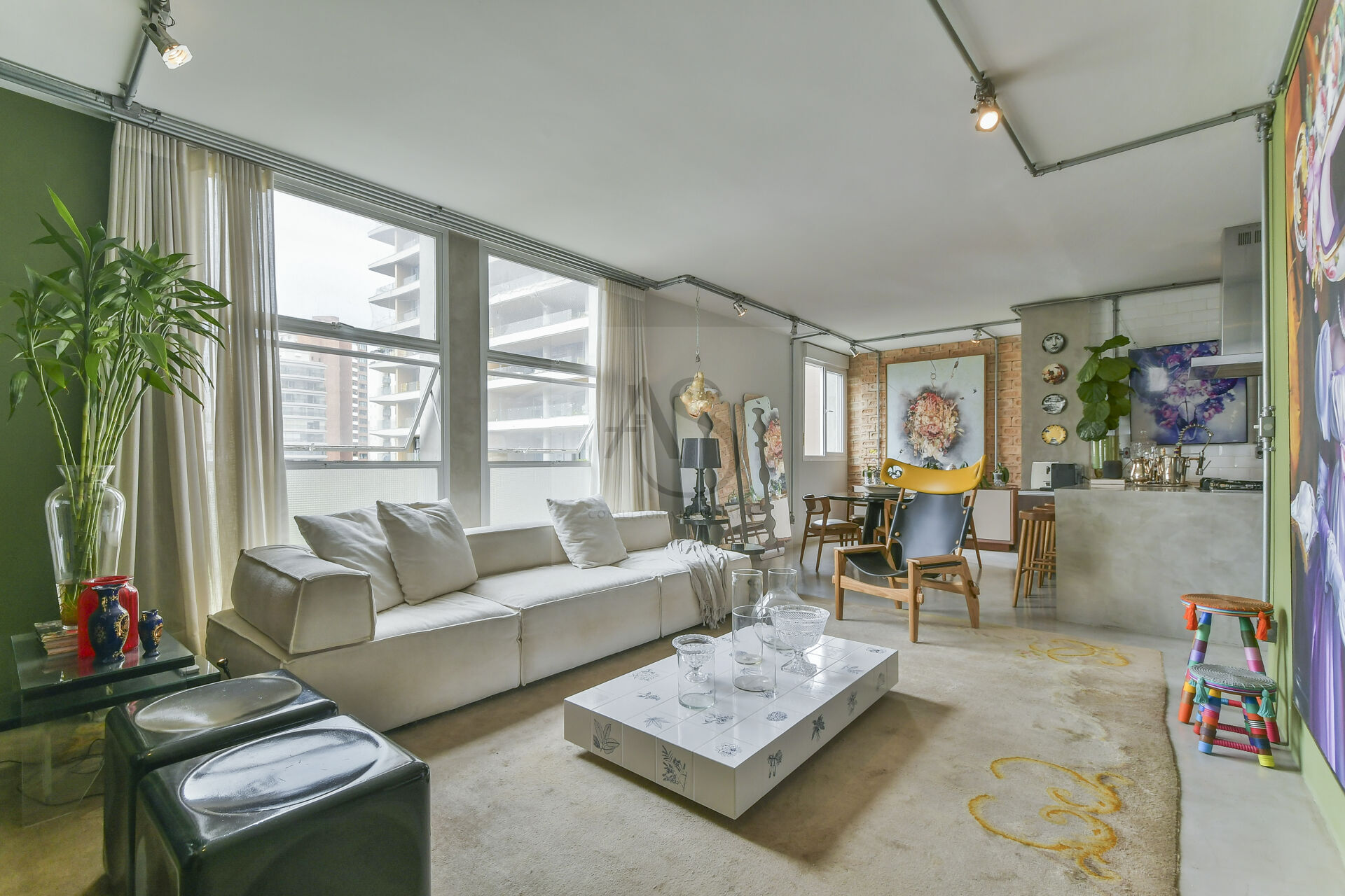 O apartamento com 120m², 2 suítes, sala e cozinha integradas, iluminado, ventilação cruzada, andar alto com vista aberta e consolidada para Av. Paulista e Parque Ibirapuera. Está localizado no coração da Vila Nova Conceição.