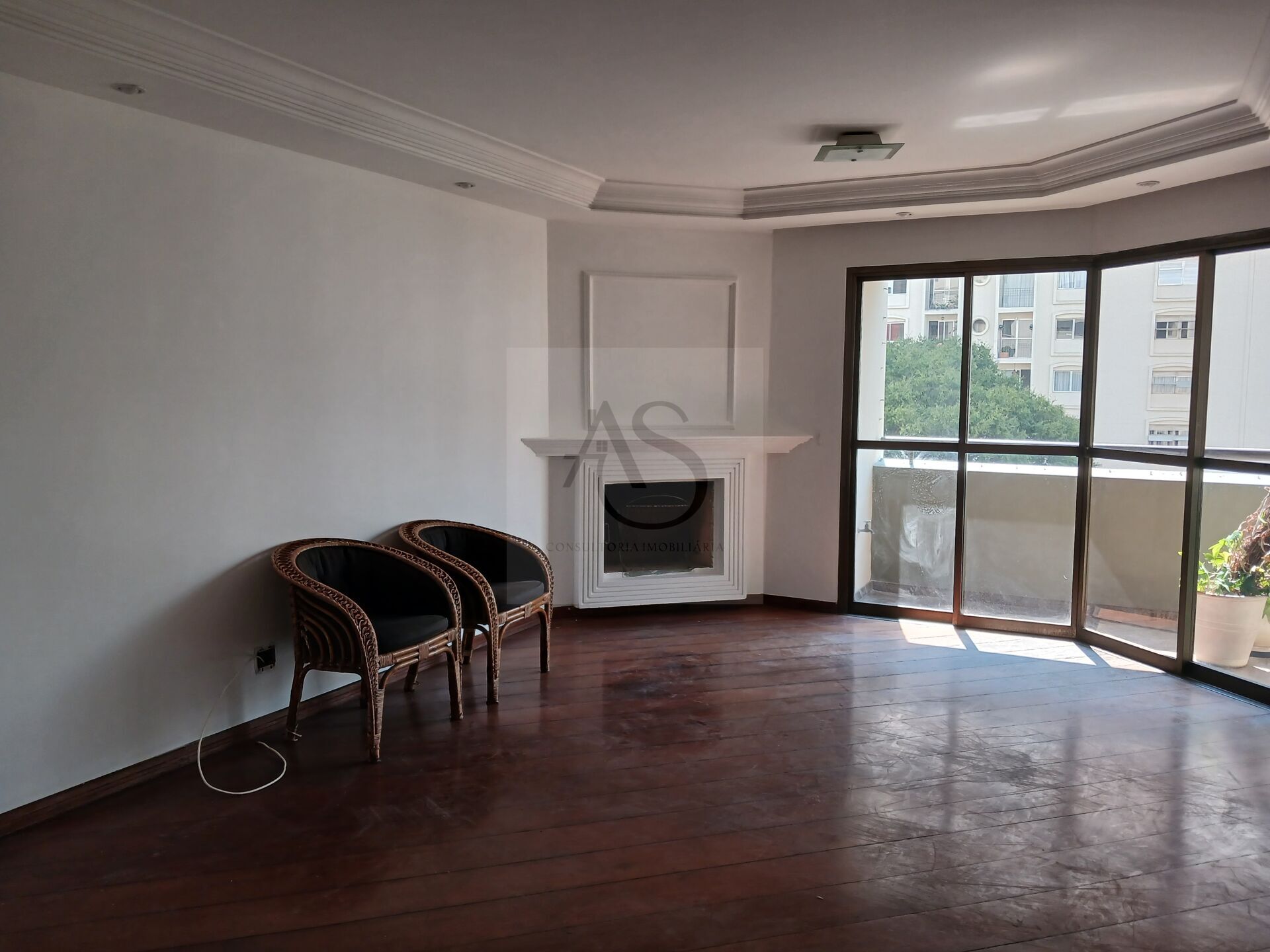 A ampla sala de estar com lareira e sacada cria um ambiente acolhedor, perfeito para momentos de convivência. A cozinha equipada com armários planejados oferece praticidade e funcionalidade no dia a dia.