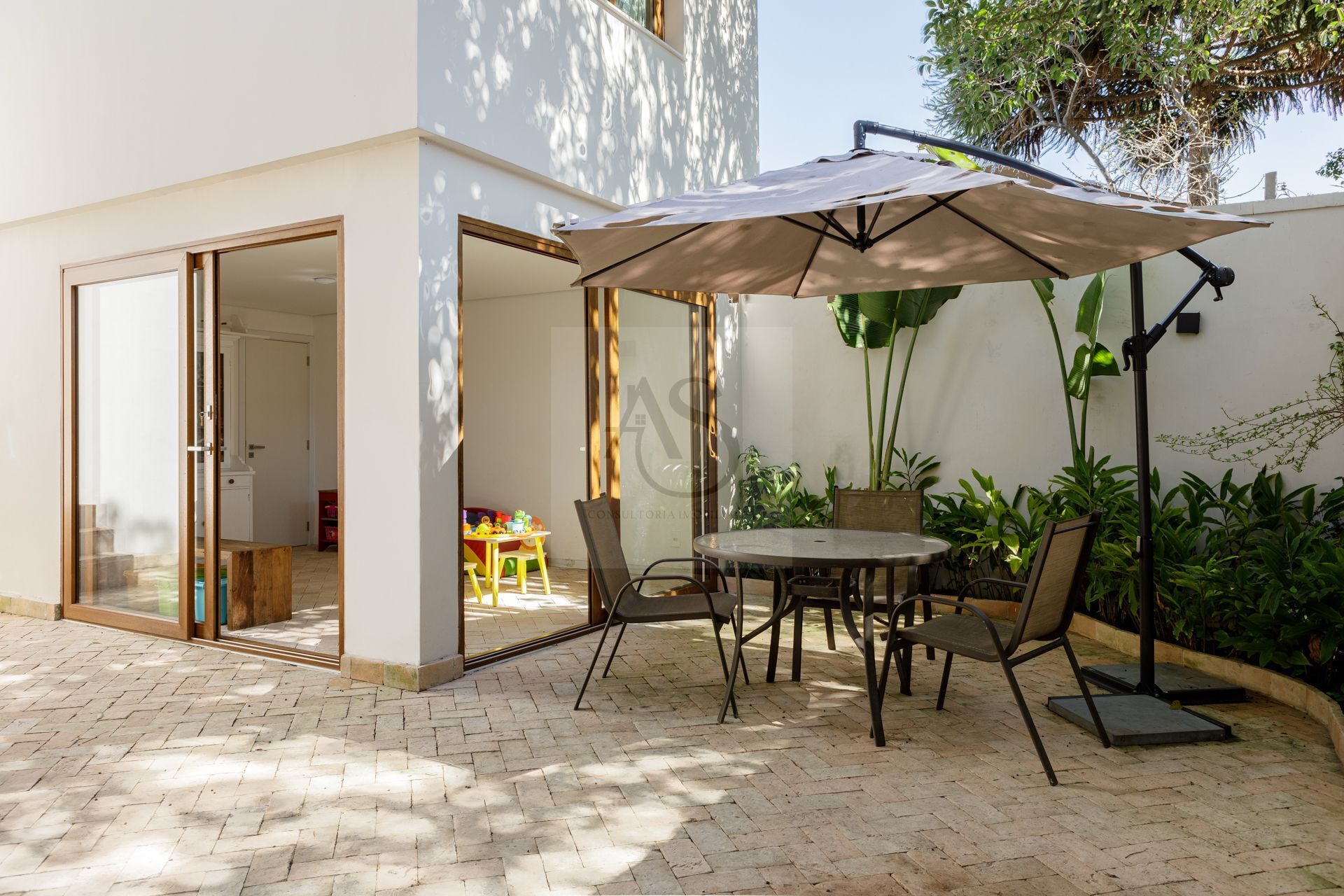 cozinha com copa, varanda social integrada ao jardim e brinquedoteca.